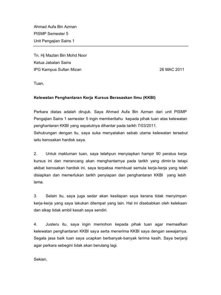 Surat Tunjuk Sebab Tidak Hadir Kuliah Latest Letter Website